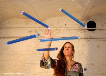 Die Rauminstallation steht für ein gesamtheitliches Verständnis von ökologischen Systemen. Das Management-Tool „balanced score card“ wird dabei mit dem 3-Säulen-Modell der Nachhaltigkeit in Verbindung gebracht. Ein freihängendes Mobile aus der Wasserwaage entlehnten Röhren zeigt den Balancezustand des ökonomischen, soziokulturellen und ökologischen Systems. Bereits ein Luftzug versetzt es in Bewegung. Einfach erfassbar wird so vermittelt, dass die Einzelteile nicht isoliert voneinander betrachtet werden können.