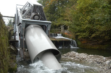 Ökologie und Ökonomie vereint: Das Unternehmen Hydroconnect GmbH entwickelte und patentierte eine spaltfreie Doppelwasserkraftschnecke zur Auf- und Abwärtswanderung für Fische in Fließgewässern. Dabei wird gleichzeitig Energie gewonnen.