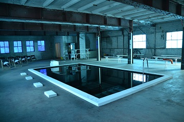 „Pool“ ist eine raumgreifende Installation aus Beton und Wasser. Direkt auf den Boden wird eine „Swimmingpool- Attrappe“ gefertigt und mit schwarz eingefärbten Wasser gefüllt. Diese Installation wird an den jeweiligen Präsentationsraum angepasst und gibt eine künstliche Tiefe, in der sich die Decke des Raumes spiegelt. Die Installation lädt zum Verweilen am Schwimmbecken ein und führt dem Betrachter einige grundlegende Eigenschaften des Wassers vor Augen.